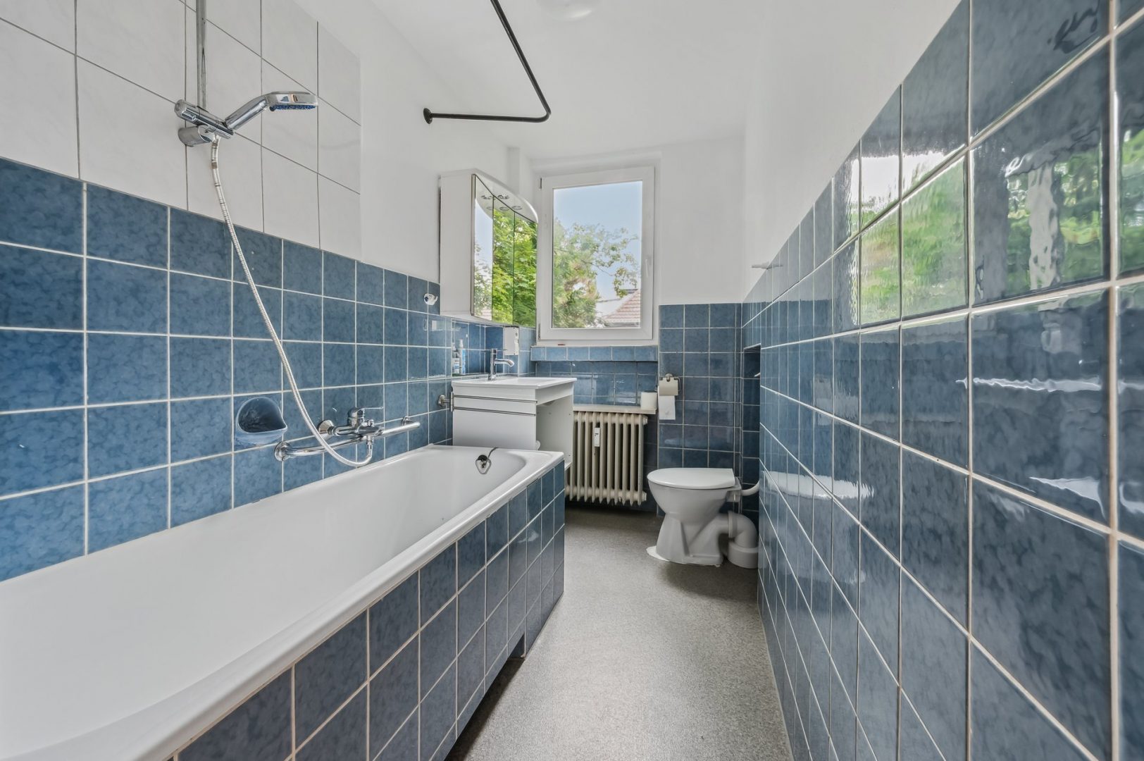 • Das Tageslichtbad mit Badewanne – renovierungsbedürftig, aber mit großem Gestaltungsspielraum für Ihre persönlichen Wünsche.