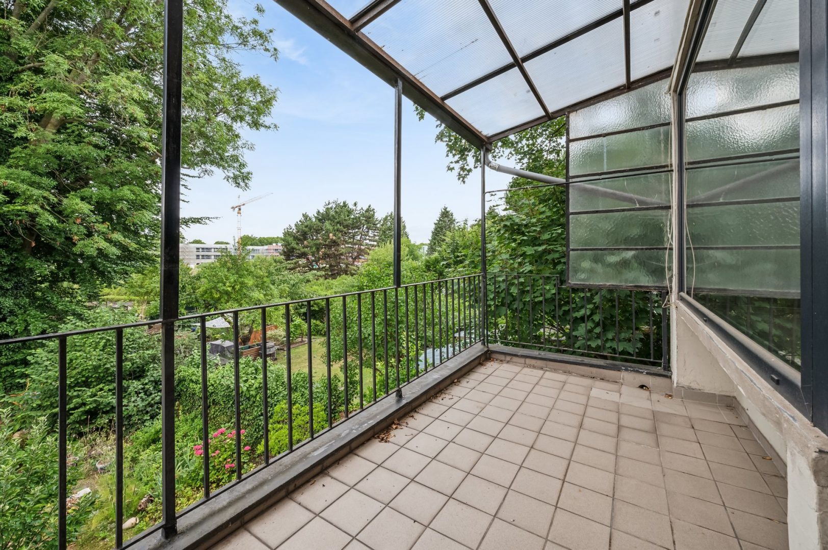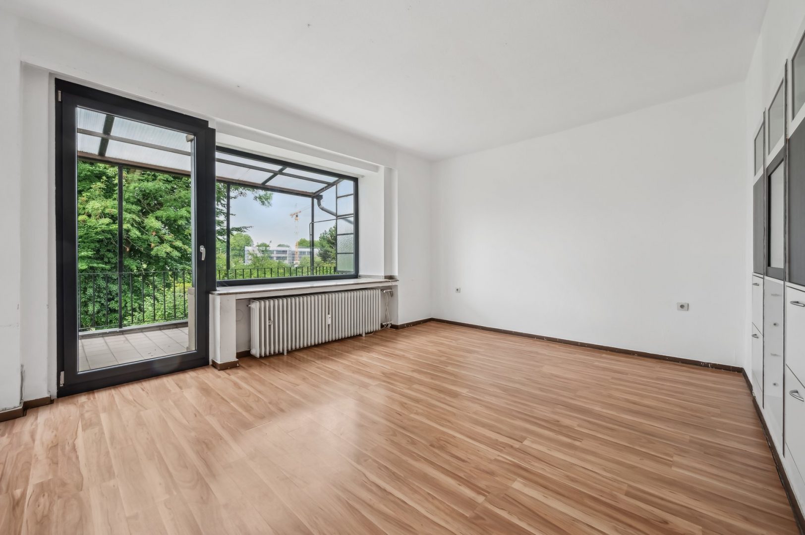 • Das großzügige Wohnzimmer mit einem herrlichen Ausblick ins Grüne. Die raumhohe Verglasung sorgt für ein wunderbar helles Ambiente und führt direkt auf den großen, überdachten Balkon. Hier genießen Sie entspannte Stunden mit Blick in den liebevoll angelegten Garten und die umliegenden Bäume.