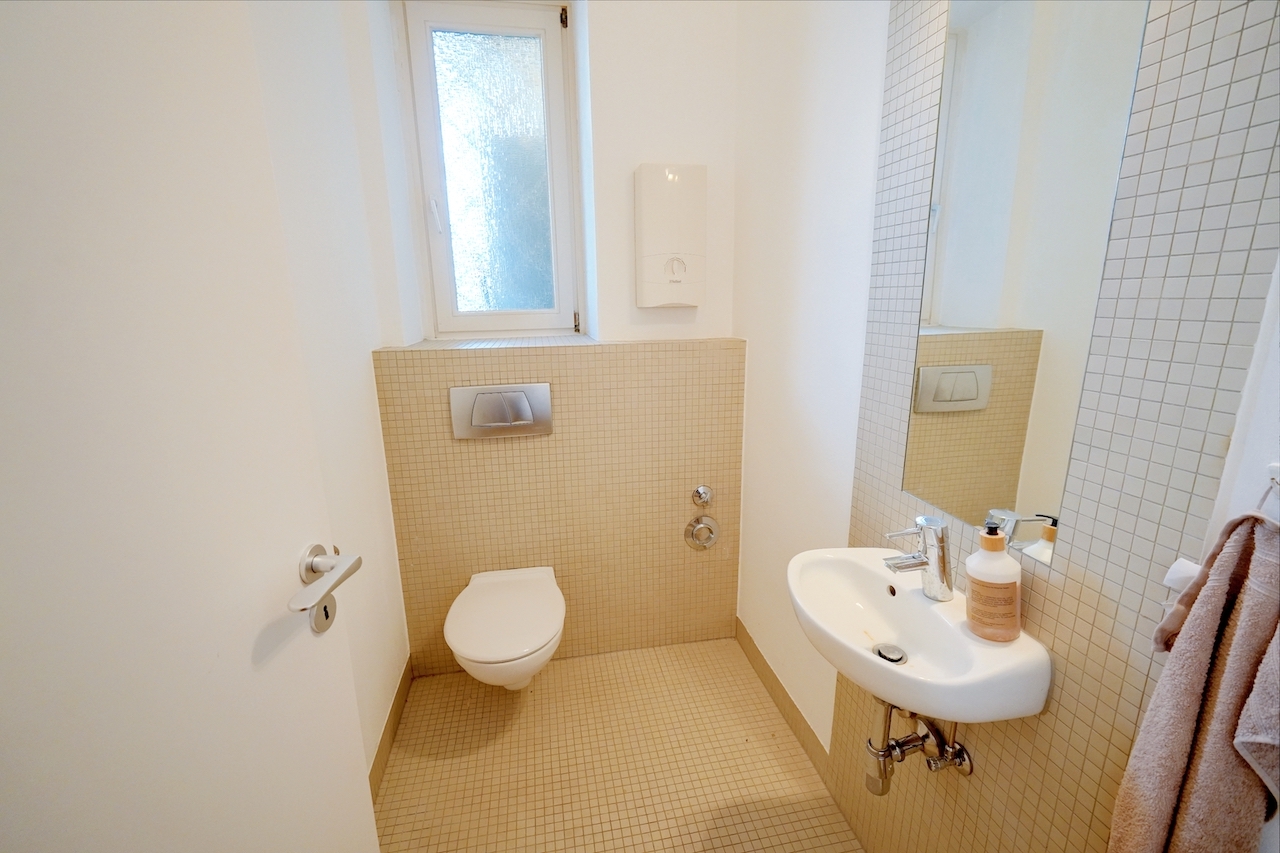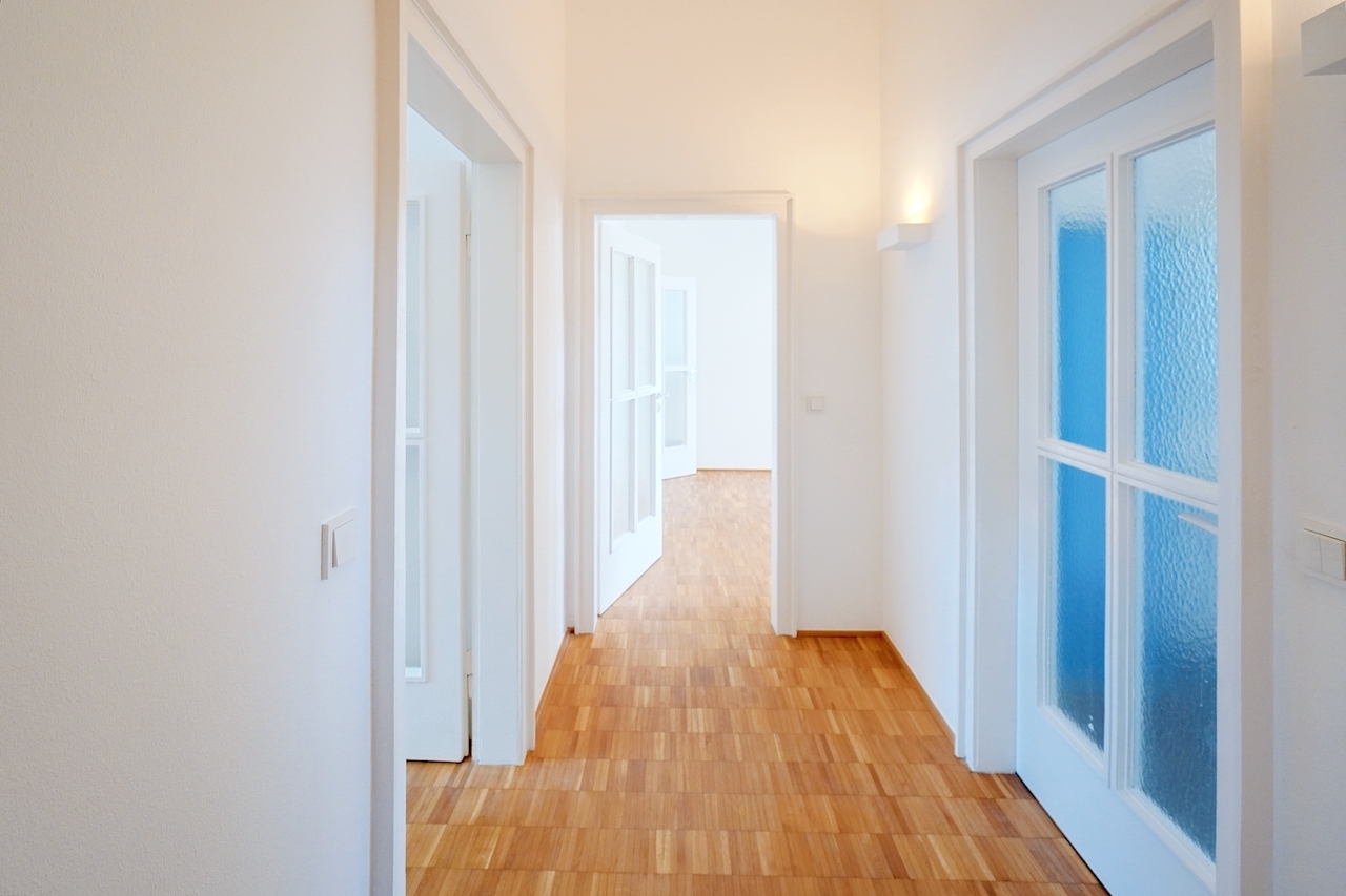 Besonders hervorzuheben sind die charmant hohen Decken von 3,25m, die großen, isolierverglasten Fenster und die Raumaufteilung. Alle Räume wurden aufwendig saniert, der Echtholzparkettboden geschliffen und versiegelt.