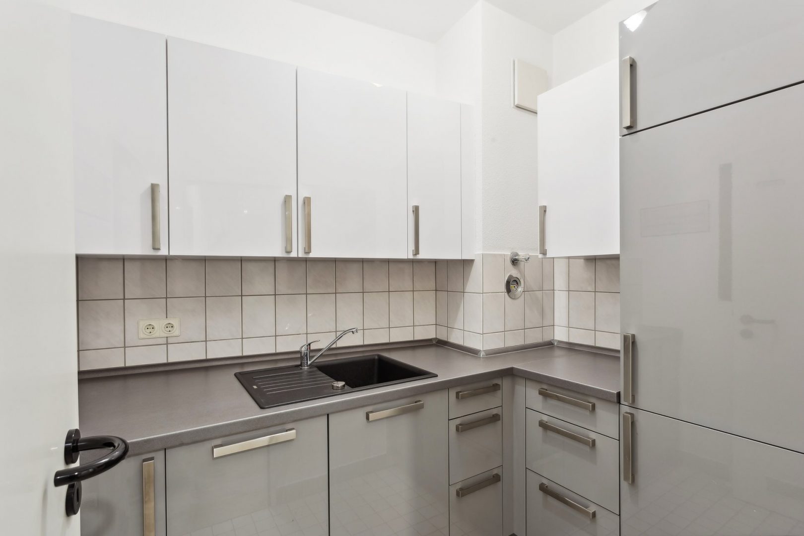 ++ Maßgefertigte Einbauküche: Die neue, zeitlose Einbauküche in elegantem grau bietet nicht nur einen funktionalen Arbeitsbereich, sondern auch einen Ort für gemeinsame Pausen und informelle Meetings, welche im Kaufpreis enthalten ist.