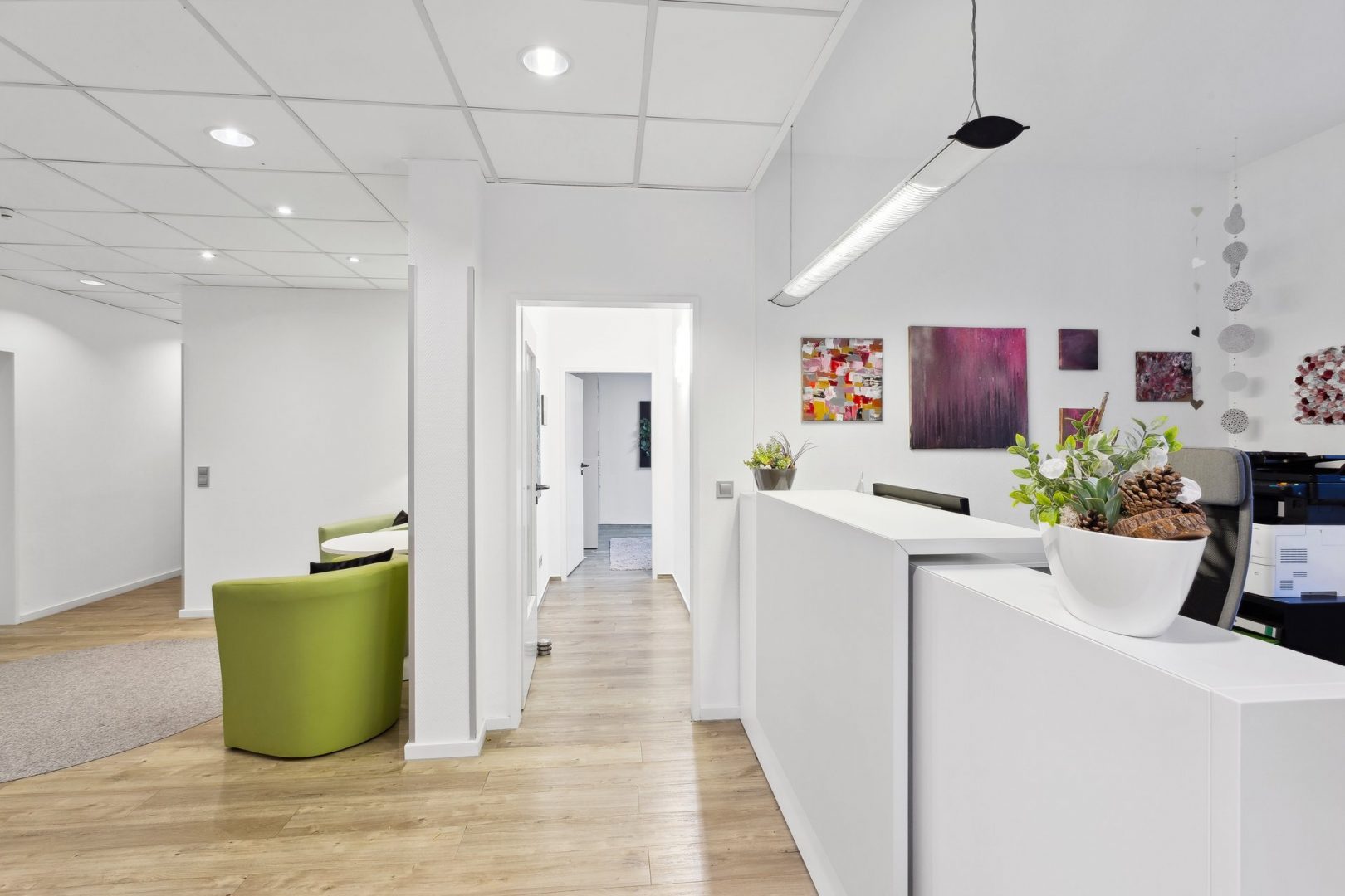 Dieses exklusive Büroensemble bietet eine Vielzahl von Möglichkeiten für Ihr Unternehmen. Mit insgesamt 6 Büros, einem großzügigen Eingangsbereich inklusive Wartebereich und Rezeption, sowie separaten Damen- und Herren-WCs ist diese Immobilie optimal auf die Bedürfnisse Ihres Unternehmens zugeschnitten. Derzeit ist die Immobilie an einen Pflegedienst vermietet. Ein Auszug des Mieters kann nach individueller Vereinbarung erfolgen.